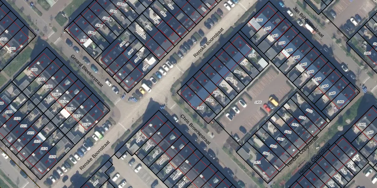 Renske Boonstraat 32 is gelegen op kadastraal perceel WDV01E1495. Deze kadastrale aanduiding is uniek en wordt gebruikt door het Kadaster om eigendomsrechten en andere zakelijke rechten vast te leggen. Het perceel maakt onderdeel uit van de kadastrale gemeente Waddinxveen.