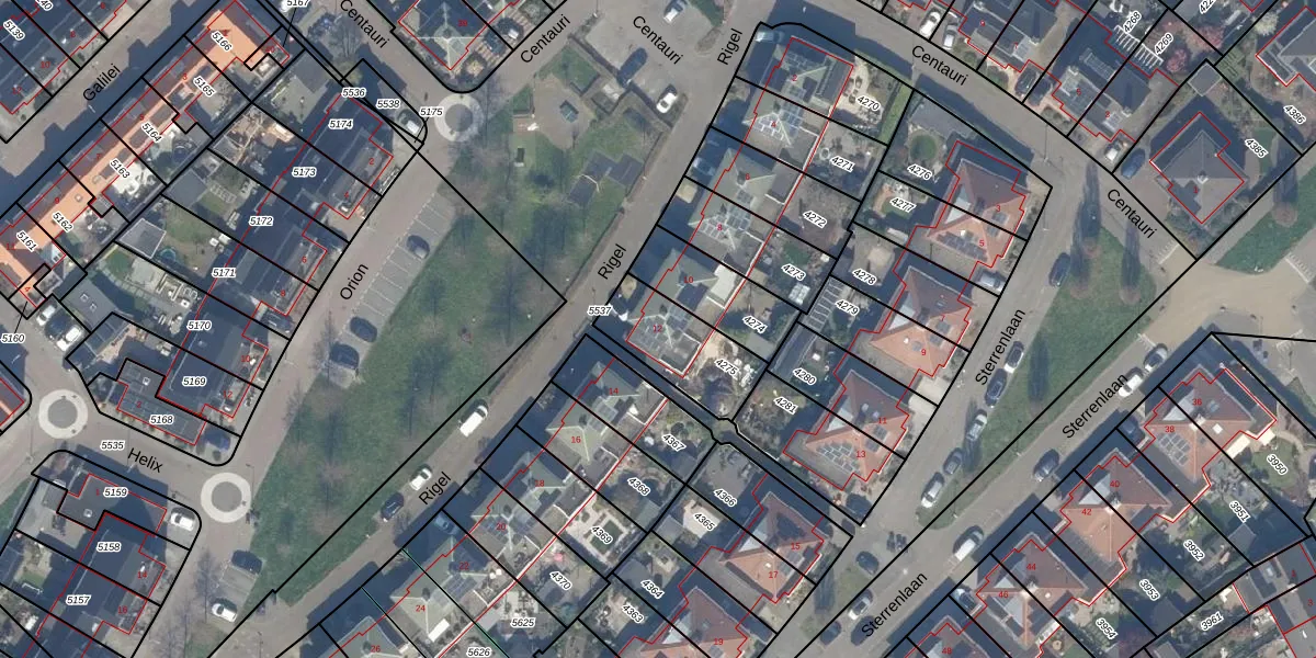 Het perceel waarop Rigel 12 staat heeft een oppervlakte van 268 m². Dit is een middelgroot perceel. De perceeloppervlakte wordt geregistreerd door het Kadaster. Gedetailleerde informatie over de maten van dit perceel kunt u vinden in het rapport Kadastrale kaart met maatvoering van Rigel 12.
