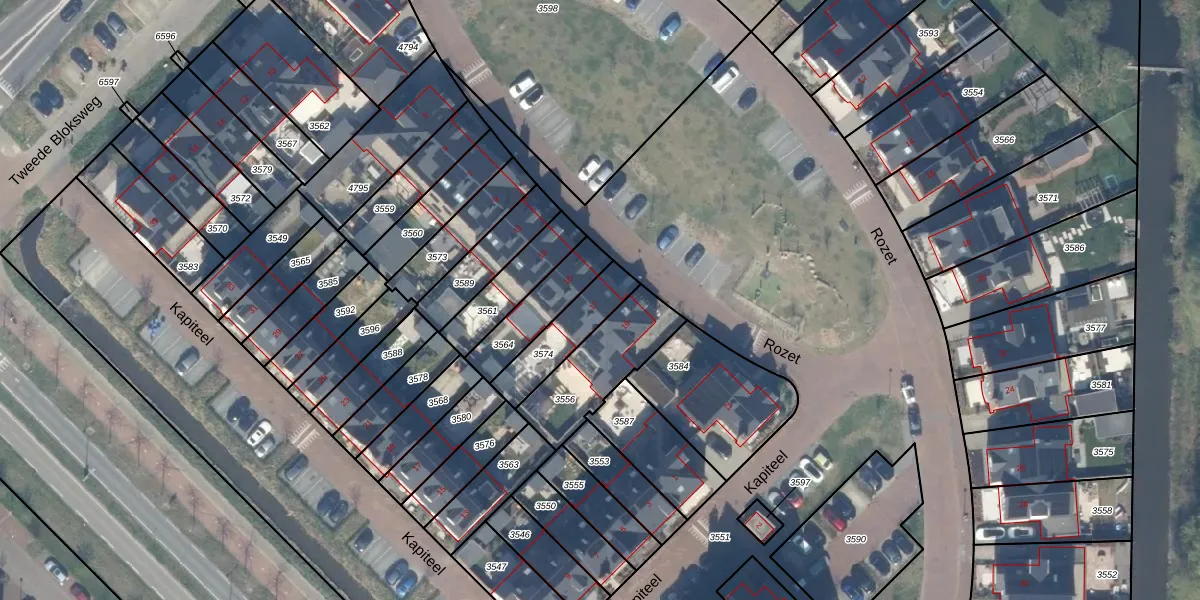 Het perceel waarop Rozet 17 staat heeft een oppervlakte van 176 m². Dit is een middelgroot perceel. De perceeloppervlakte wordt geregistreerd door het Kadaster. Gedetailleerde informatie over de maten van dit perceel kunt u vinden in het rapport Kadastrale kaart met maatvoering van Rozet 17.