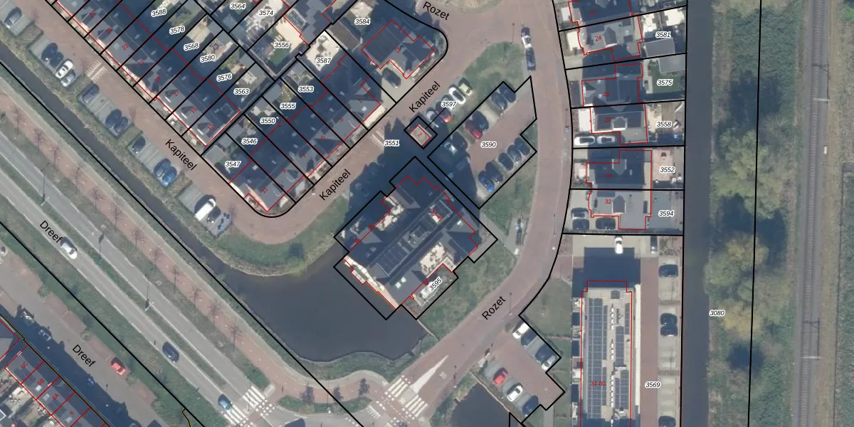 Het perceel waarop Rozet 27 staat heeft een oppervlakte van 800 m². Dit is een groot perceel. De perceeloppervlakte wordt geregistreerd door het Kadaster. Gedetailleerde informatie over de maten van dit perceel kunt u vinden in het rapport Kadastrale kaart met maatvoering van Rozet 27.