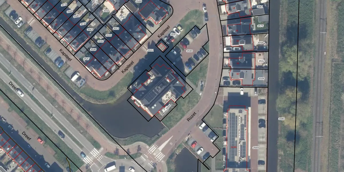 Het perceel waarop het adres ligt is WDV01-E-3595. De afkorting 'WDV01' staat voor kadastrale gemeente Waddinxveen. De gemiddelde perceelgrootte in Waddinxveen is 2158,81 m². Dit perceel is kleiner: de perceeloppervlakte bedraagt 800 m². Het kleinste perceel in de kadastrale gemeente is 0 m² groot. De grootste perceeloppervlakte is 49,8 ha. Op het perceel zijn 12 adressen aanwezig. De huidige grenzen van het perceel zijn digitaal in de Basisregistratie Kadaster (BRK) geregistreerd op 05-10-2023.