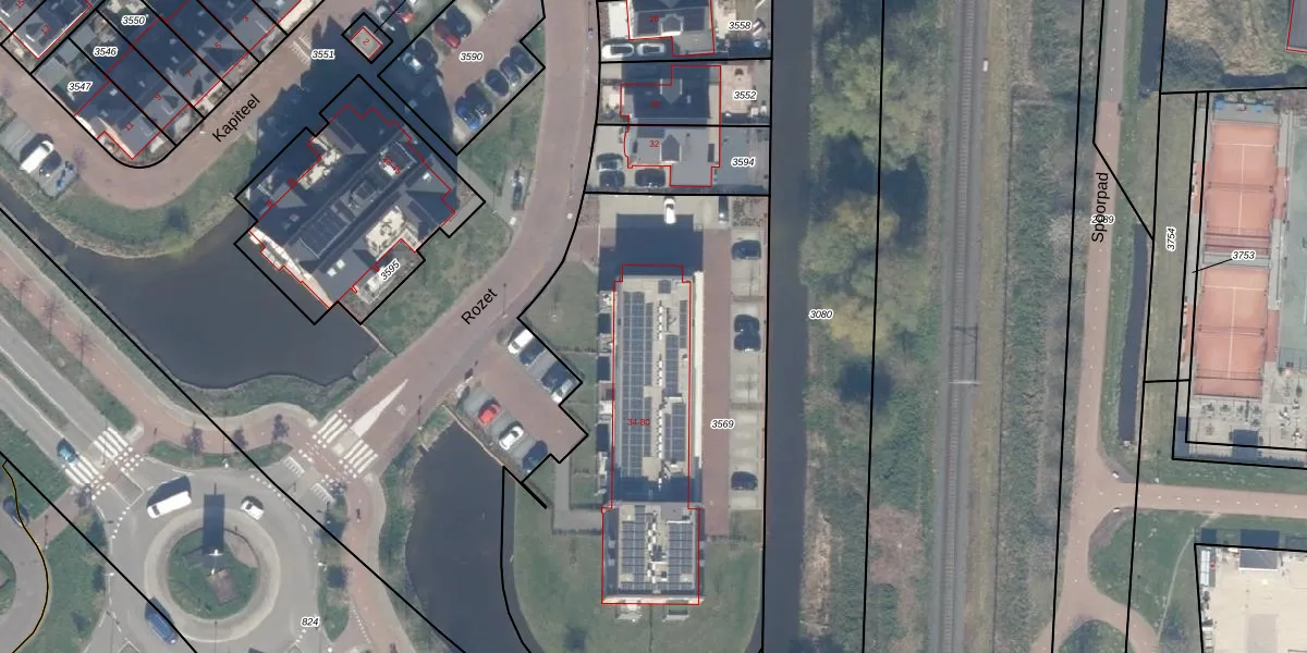 Het perceel waarop het adres ligt is WDV01-E-3569. De afkorting 'WDV01' staat voor kadastrale gemeente Waddinxveen. Het perceel is met 2665 m² relatief groot. Het gemiddelde ligt in de kadastrale gemeente Waddinxveen op 2158,81 m². De grootste perceeloppervlakte in de kadastrale gemeente is 49,8 ha. De kleinste oppervlakte bedraagt 0 m². Op het perceel liggen in totaal 24 adressen. In de Basisregistratie Kadaster (BRK) werden de grenzen van het perceel geregistreerd op 05-12-2023.