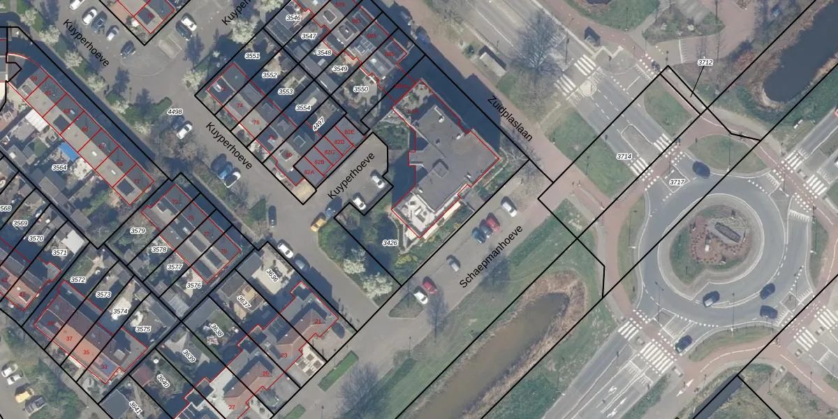 Het adres ligt op het perceel WDV01-C-3426, dat zich in de kadastrale gemeente Waddinxveen bevindt. Het perceel is 1360 m² groot. Dat is kleiner dan de gemiddelde perceeloppervlakte in Waddinxveen, dat op 2158,81 m² ligt. De grootste perceeloppervlakte in de kadastrale gemeente is 49,8 ha. De kleinste oppervlakte bedraagt 0 m². Op het perceel zijn 16 adressen aanwezig. De huidige grenzen van het perceel zijn digitaal in de Basisregistratie Kadaster (BRK) geregistreerd op 30-09-2003.