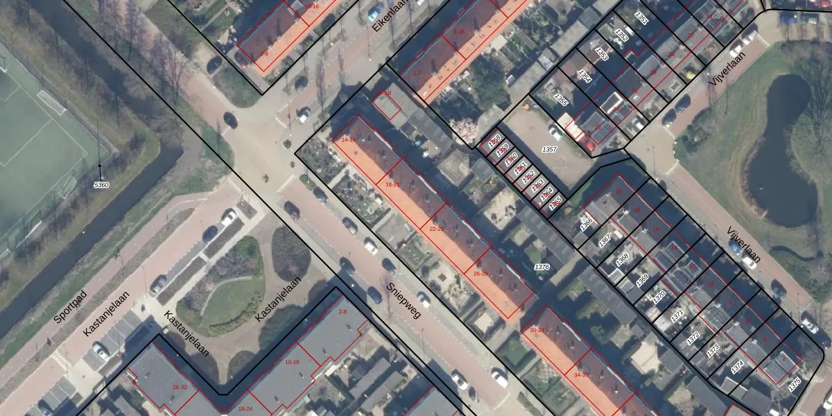 Sniepweg 21 is gelegen op kadastraal perceel WDV01C1376. Deze kadastrale aanduiding is uniek en wordt gebruikt door het Kadaster om eigendomsrechten en andere zakelijke rechten vast te leggen. Het perceel maakt onderdeel uit van de kadastrale gemeente Waddinxveen.