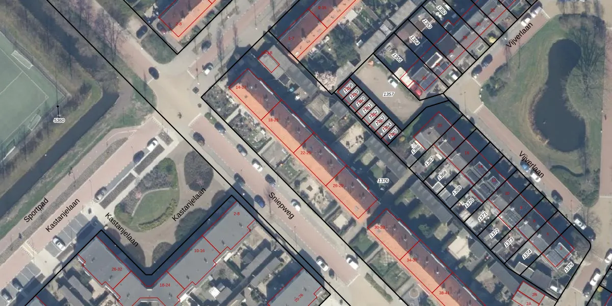 Het perceel waarop Sniepweg 22 staat heeft een oppervlakte van 4262 m². Dit is een zeer groot perceel. De perceeloppervlakte wordt geregistreerd door het Kadaster. Gedetailleerde informatie over de maten van dit perceel kunt u vinden in het rapport Kadastrale kaart met maatvoering van Sniepweg 22.