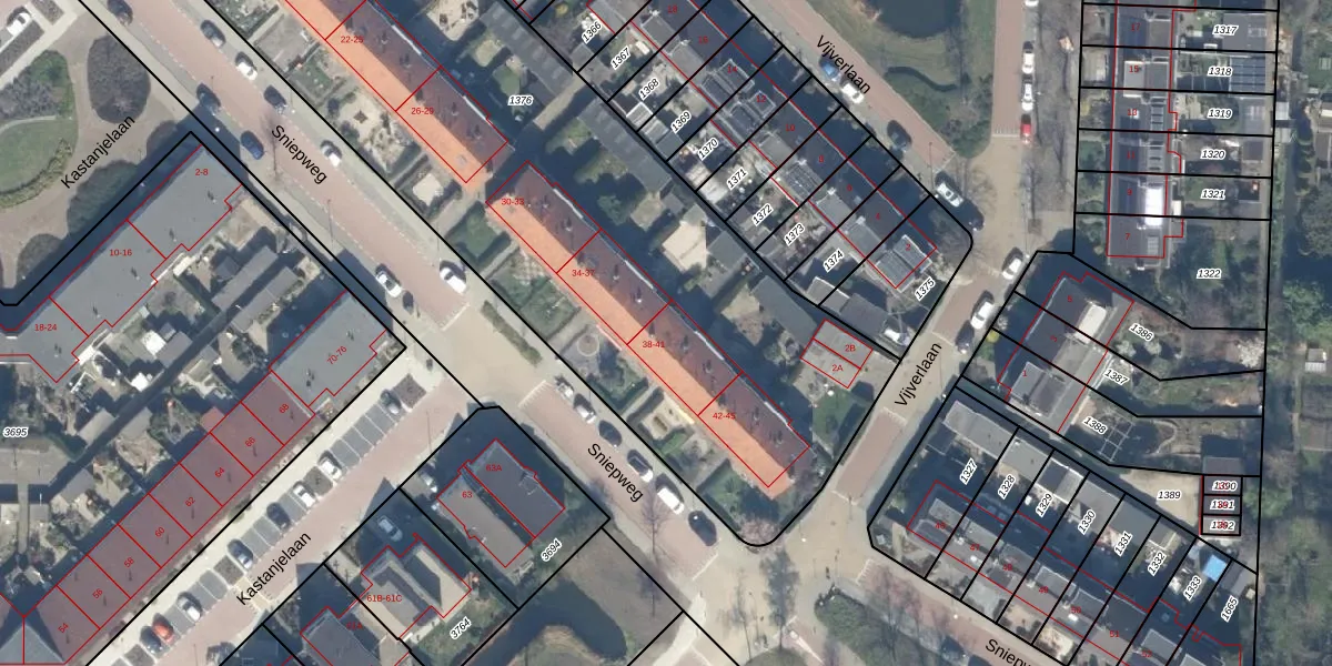 Sniepweg 39 is gelegen op kadastraal perceel WDV01C1376. Deze kadastrale aanduiding is uniek en wordt gebruikt door het Kadaster om eigendomsrechten en andere zakelijke rechten vast te leggen. Het perceel maakt onderdeel uit van de kadastrale gemeente Waddinxveen.