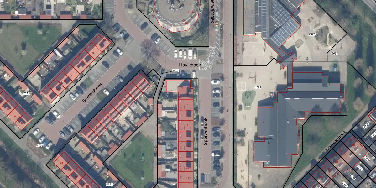 Het perceel waarop Sperwerhoek 1 staat heeft een oppervlakte van 4160 m². Dit is een zeer groot perceel. De perceeloppervlakte wordt geregistreerd door het Kadaster. Gedetailleerde informatie over de maten van dit perceel kunt u vinden in het rapport Kadastrale kaart met maatvoering van Sperwerhoek 1.