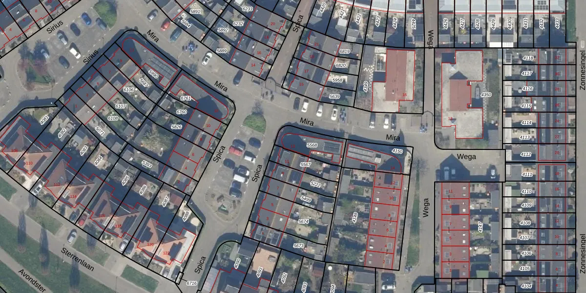 Het perceel waarop Spica 13 staat heeft een oppervlakte van 200 m². Dit is een middelgroot perceel. De perceeloppervlakte wordt geregistreerd door het Kadaster. Gedetailleerde informatie over de maten van dit perceel kunt u vinden in het rapport Kadastrale kaart met maatvoering van Spica 13.