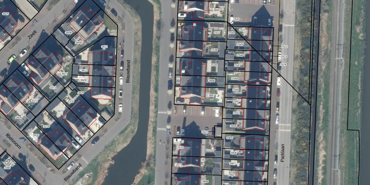 Gebruik de zoekbalk of klik op een perceel voor informatie over de adressen binnen dit perceel.