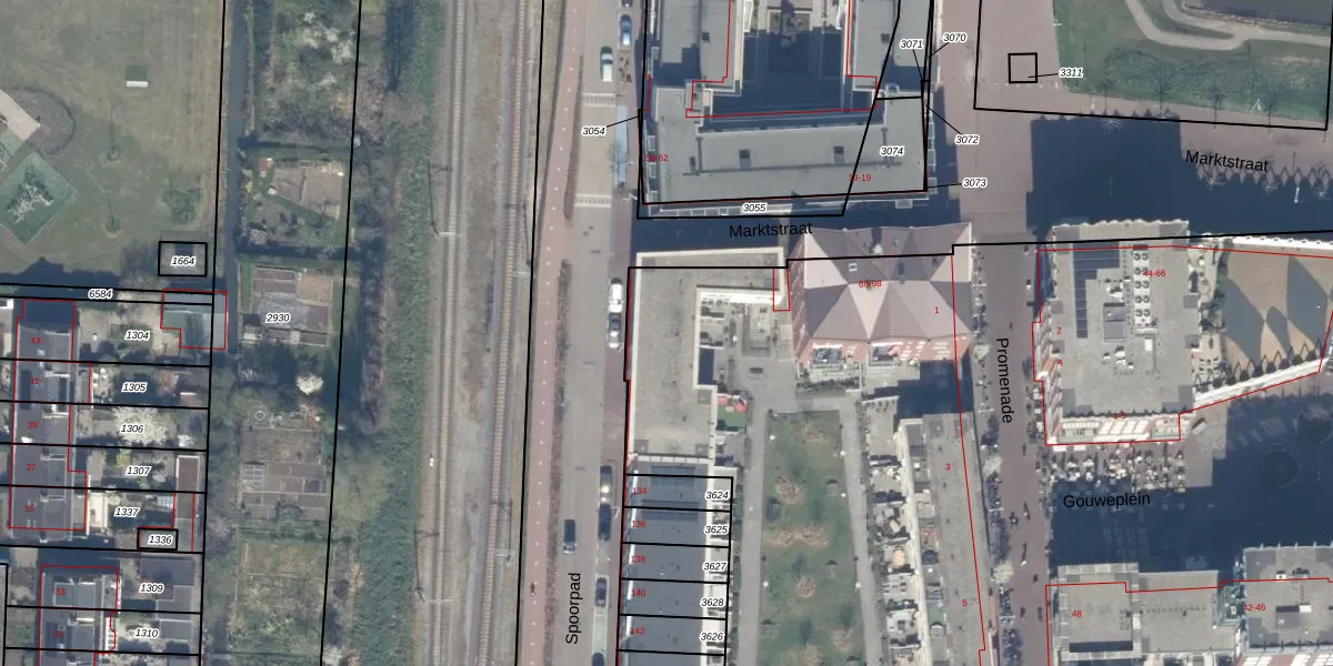 Het adres ligt op het perceel WDV01-D-3557, dat zich in de kadastrale gemeente Waddinxveen bevindt. De gemiddelde perceeloppervlakte in de kadastrale gemeente Waddinxveen is 2158,81 m². Dit perceel is met zijn 3,1 ha dus groter dan gemiddeld. De grootste perceeloppervlakte in de kadastrale gemeente is 49,8 ha. De kleinste oppervlakte bedraagt 0 m². Er zijn 316 adressen aanwezig op het perceel. De laatste wijziging in het de Basisregistratie Kadaster (BRK) was op 11-12-2025.
