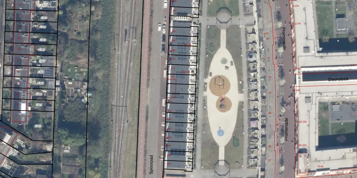 Het perceel waarop Spoorpad 162 staat heeft een oppervlakte van 88 m². Dit is een klein perceel. De perceeloppervlakte wordt geregistreerd door het Kadaster. Gedetailleerde informatie over de maten van dit perceel kunt u vinden in het rapport Kadastrale kaart met maatvoering van Spoorpad 162.