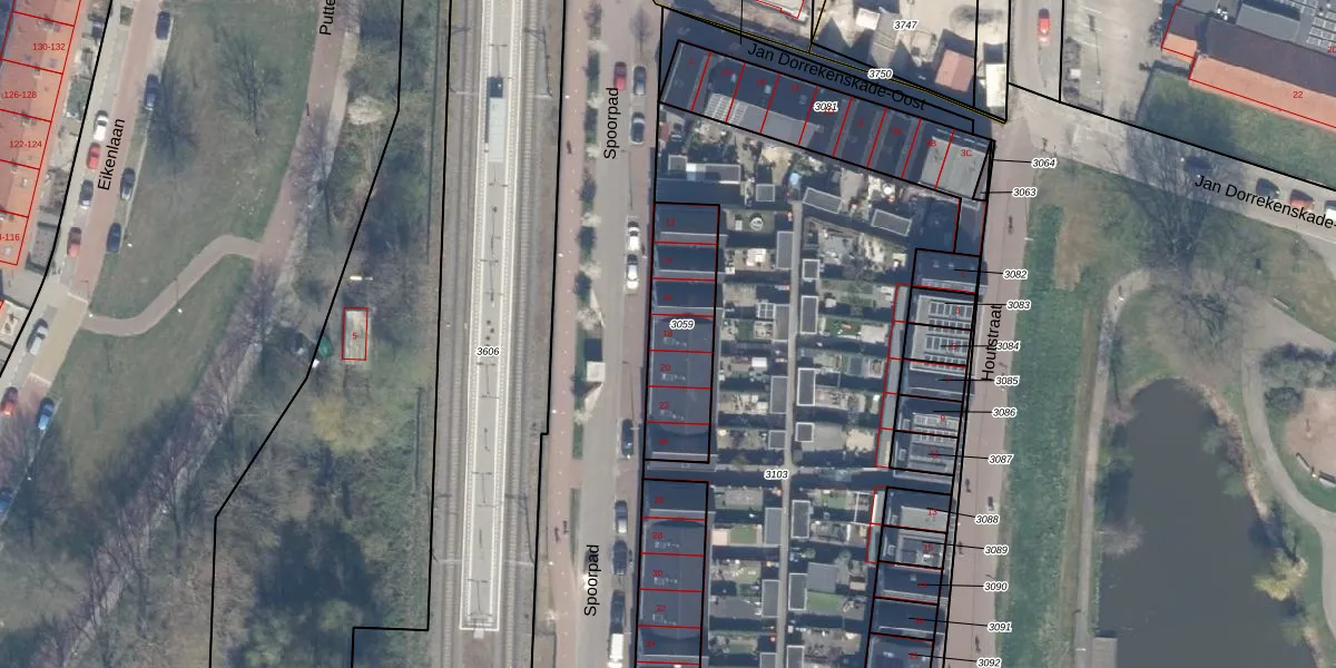 Het perceel waarop Spoorpad 18 staat heeft een oppervlakte van 374 m². Dit is een groot perceel. De perceeloppervlakte wordt geregistreerd door het Kadaster. Gedetailleerde informatie over de maten van dit perceel kunt u vinden in het rapport Kadastrale kaart met maatvoering van Spoorpad 18.