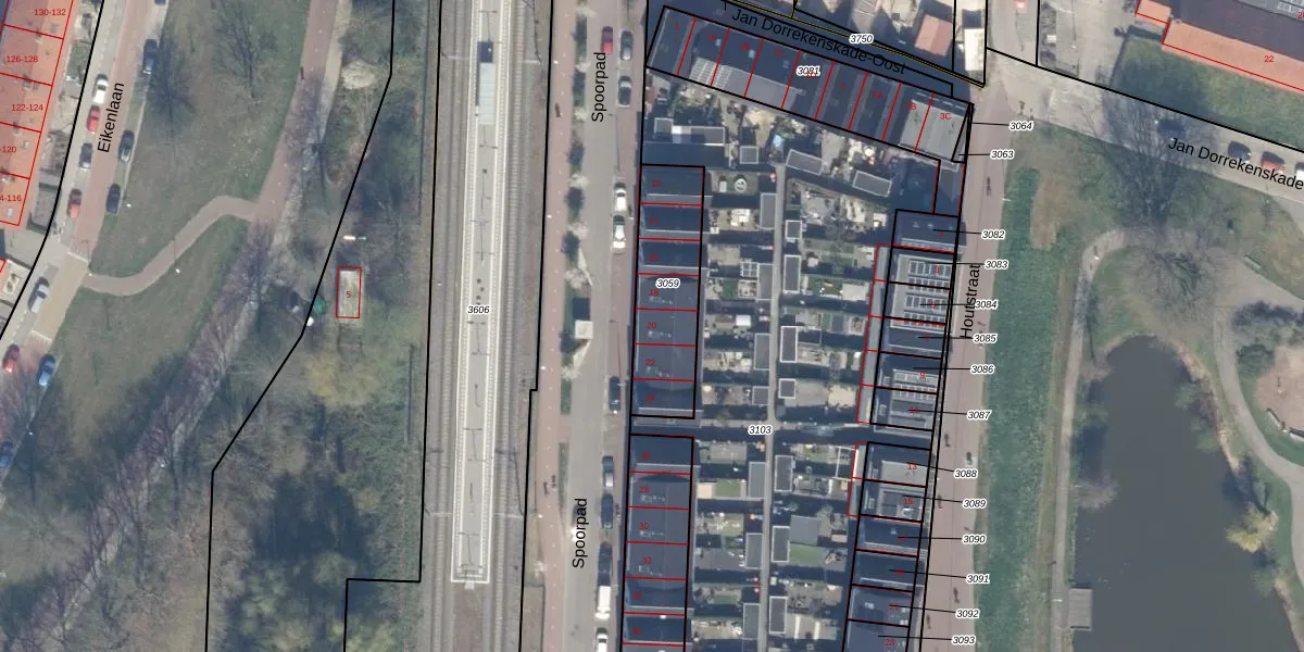 Spoorpad 20 is gelegen op kadastraal perceel WDV01D3059. Deze kadastrale aanduiding is uniek en wordt gebruikt door het Kadaster om eigendomsrechten en andere zakelijke rechten vast te leggen. Het perceel maakt onderdeel uit van de kadastrale gemeente Waddinxveen.