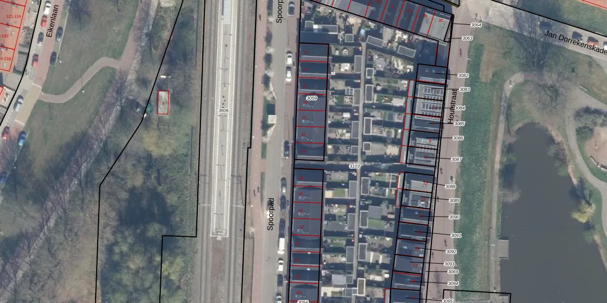 Het perceel waarop Spoorpad 24 staat heeft een oppervlakte van 374 m². Dit is een groot perceel. De perceeloppervlakte wordt geregistreerd door het Kadaster. Gedetailleerde informatie over de maten van dit perceel kunt u vinden in het rapport Kadastrale kaart met maatvoering van Spoorpad 24.