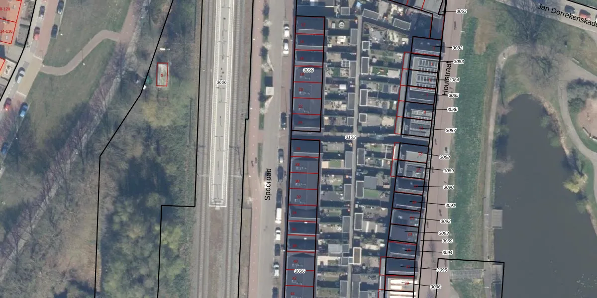 Spoorpad 26 is gelegen op kadastraal perceel WDV01D3056. Deze kadastrale aanduiding is uniek en wordt gebruikt door het Kadaster om eigendomsrechten en andere zakelijke rechten vast te leggen. Het perceel maakt onderdeel uit van de kadastrale gemeente Waddinxveen.