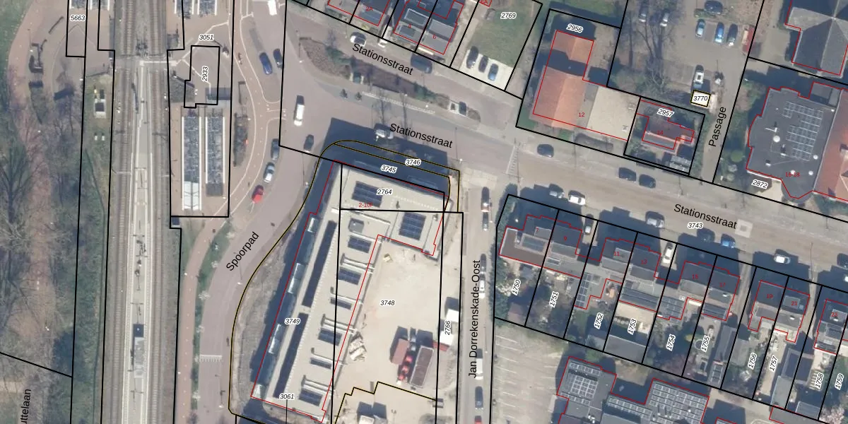 Het perceel waarop het adres ligt is WDV01-D-3748. De afkorting 'WDV01' staat voor kadastrale gemeente Waddinxveen. Het perceel is 1052 m² groot. Dat is kleiner dan de gemiddelde perceeloppervlakte in Waddinxveen, dat op 2158,81 m² ligt. Het grootste perceel in de kadastrale gemeente is 49,8 ha. Het kleinste perceel heeft een oppervlakte van 0 m². Op het perceel zijn 11 adressen aanwezig. De laatste wijziging in het de Basisregistratie Kadaster (BRK) was op 19-04-2023.