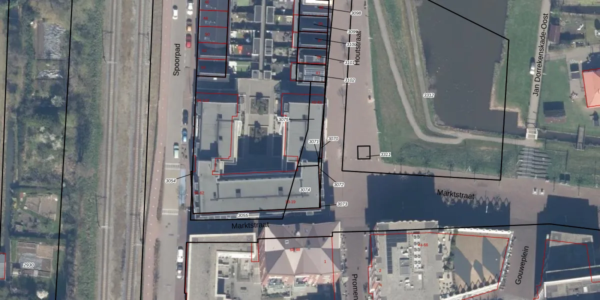 Het adres ligt op het perceel WDV01-D-3103, dat zich in de kadastrale gemeente Waddinxveen bevindt. De gemiddelde perceeloppervlakte in de kadastrale gemeente Waddinxveen is 2160,88 m². Dit perceel is met zijn 5264 m² dus groter dan gemiddeld. Het kleinste perceel in de kadastrale gemeente is 0 m² groot. De grootste perceeloppervlakte is 49,8 ha. Er zijn 32 adressen aanwezig op het perceel. De huidige grenzen van het perceel zijn digitaal in de Basisregistratie Kadaster (BRK) geregistreerd op 09-01-2013.