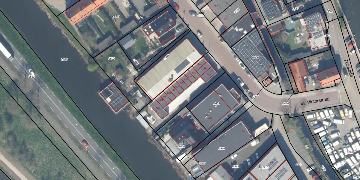 St. Victorstraat 43-H is gelegen op kadastraal perceel WDV01F2500. Deze kadastrale aanduiding is uniek en wordt gebruikt door het Kadaster om eigendomsrechten en andere zakelijke rechten vast te leggen. Het perceel maakt onderdeel uit van de kadastrale gemeente Waddinxveen.