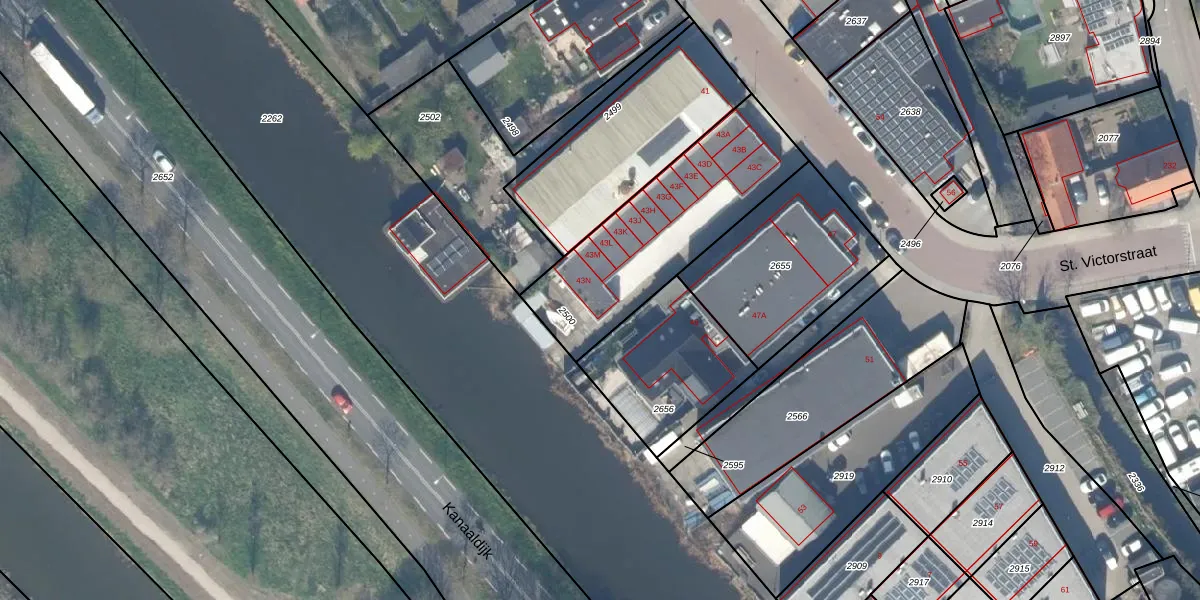 Het perceel waarop St. Victorstraat 43-N staat heeft een oppervlakte van 750 m². Dit is een groot perceel. De perceeloppervlakte wordt geregistreerd door het Kadaster. Gedetailleerde informatie over de maten van dit perceel kunt u vinden in het rapport Kadastrale kaart met maatvoering van St. Victorstraat 43-N.