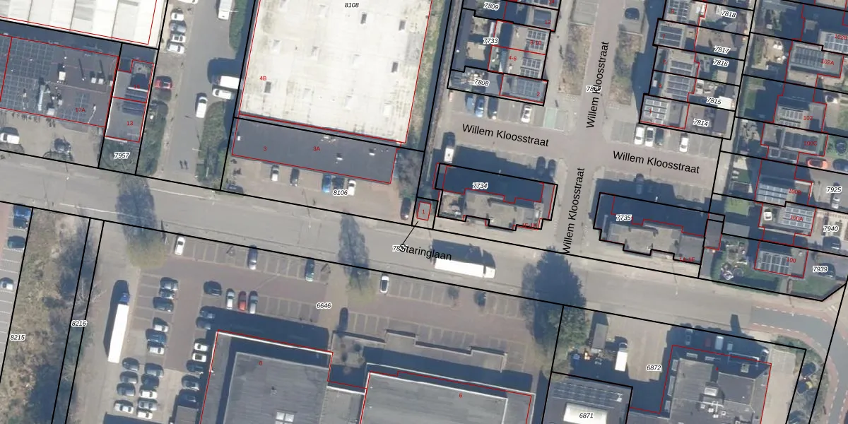 Het perceel waarop Staringlaan 1 staat heeft een oppervlakte van 35 m². Dit is een klein perceel. De perceeloppervlakte wordt geregistreerd door het Kadaster. Gedetailleerde informatie over de maten van dit perceel kunt u vinden in het rapport Kadastrale kaart met maatvoering van Staringlaan 1.