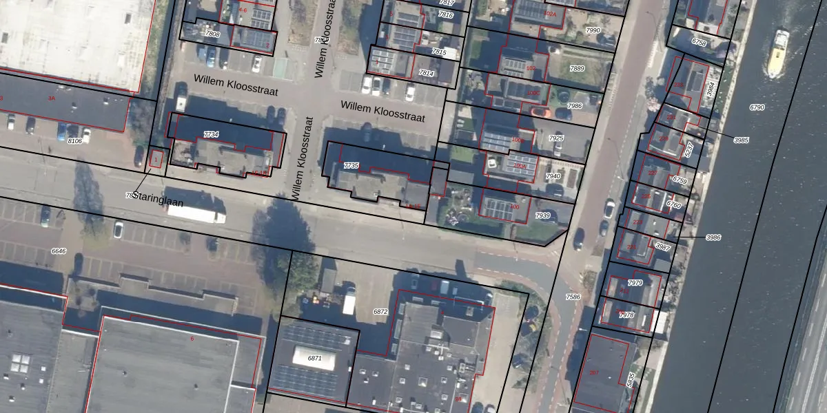 Staringlaan 1-A is gelegen op kadastraal perceel WDV01B7735. Deze kadastrale aanduiding is uniek en wordt gebruikt door het Kadaster om eigendomsrechten en andere zakelijke rechten vast te leggen. Het perceel maakt onderdeel uit van de kadastrale gemeente Waddinxveen.