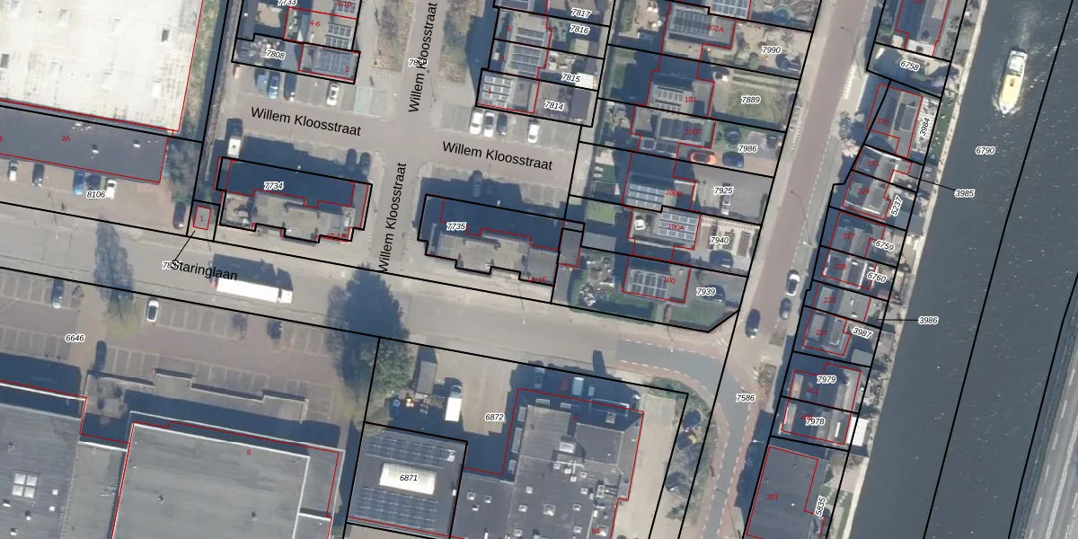 Staringlaan 1-B is gelegen op kadastraal perceel WDV01B7735. Deze kadastrale aanduiding is uniek en wordt gebruikt door het Kadaster om eigendomsrechten en andere zakelijke rechten vast te leggen. Het perceel maakt onderdeel uit van de kadastrale gemeente Waddinxveen.