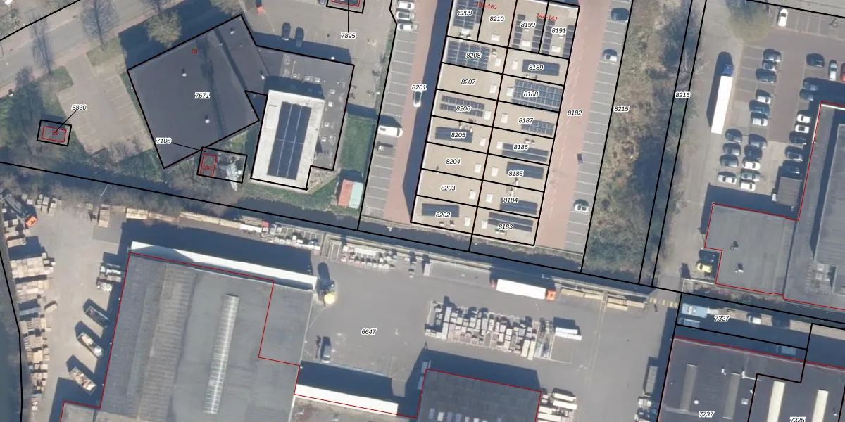 Het perceel waarop het adres ligt is WDV01-B-8202. De afkorting 'WDV01' staat voor kadastrale gemeente Waddinxveen. De gemiddelde perceelgrootte in Waddinxveen is 2165,17 m². Dit perceel is kleiner: de perceeloppervlakte bedraagt 97 m². Het grootste perceel in de kadastrale gemeente is 49,8 ha. Het kleinste perceel heeft een oppervlakte van 0 m². Dit is het enige adres dat aanwezig is op het perceel. De huidige grenzen van het perceel zijn digitaal in de Basisregistratie Kadaster (BRK) geregistreerd op 21-12-2023.