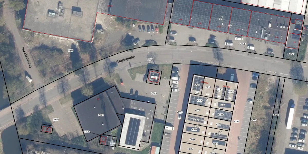 Staringlaan 18-A is gelegen op kadastraal perceel WDV01B7895. Deze kadastrale aanduiding is uniek en wordt gebruikt door het Kadaster om eigendomsrechten en andere zakelijke rechten vast te leggen. Het perceel maakt onderdeel uit van de kadastrale gemeente Waddinxveen.