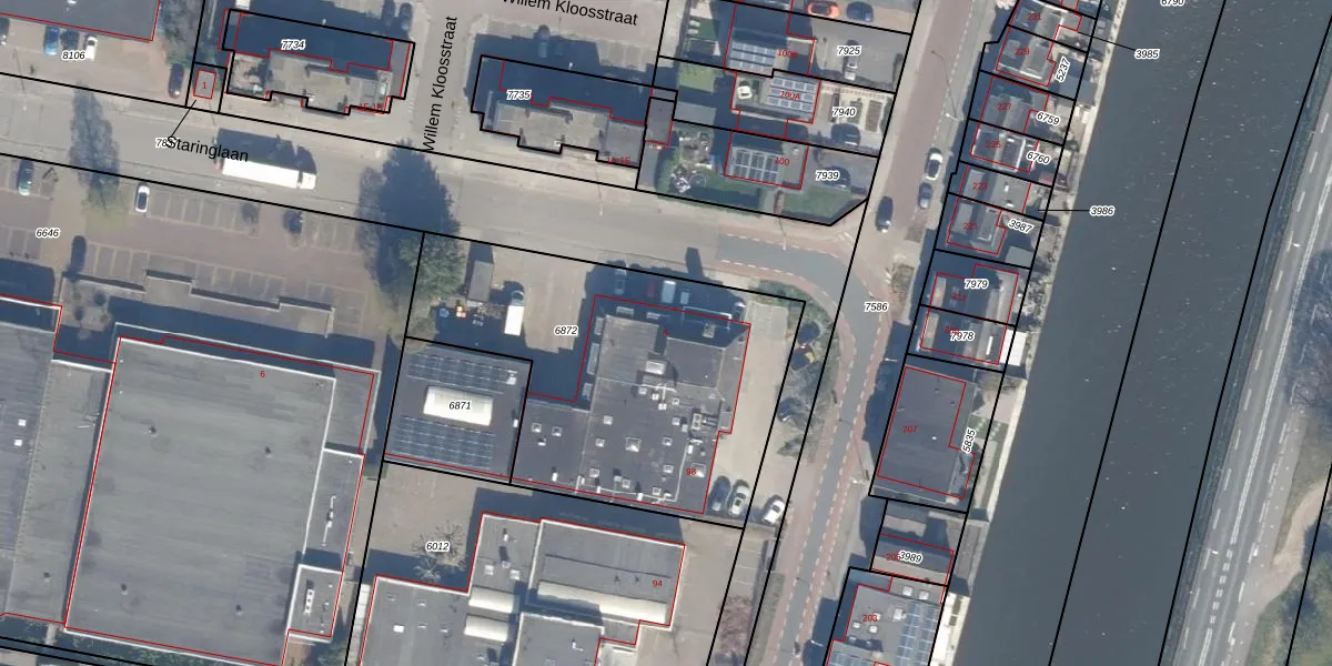 Staringlaan 4 is gelegen op kadastraal perceel WDV01B6872. Deze kadastrale aanduiding is uniek en wordt gebruikt door het Kadaster om eigendomsrechten en andere zakelijke rechten vast te leggen. Het perceel maakt onderdeel uit van de kadastrale gemeente Waddinxveen.