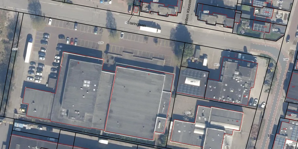 Staringlaan 6 is gelegen op kadastraal perceel WDV01B6646. Deze kadastrale aanduiding is uniek en wordt gebruikt door het Kadaster om eigendomsrechten en andere zakelijke rechten vast te leggen. Het perceel maakt onderdeel uit van de kadastrale gemeente Waddinxveen.