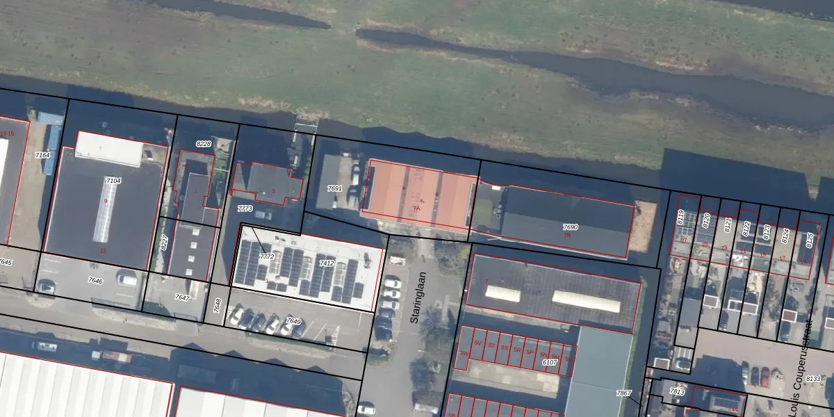 Staringlaan 7-A is gelegen op kadastraal perceel WDV01B7691. Deze kadastrale aanduiding is uniek en wordt gebruikt door het Kadaster om eigendomsrechten en andere zakelijke rechten vast te leggen. Het perceel maakt onderdeel uit van de kadastrale gemeente Waddinxveen.