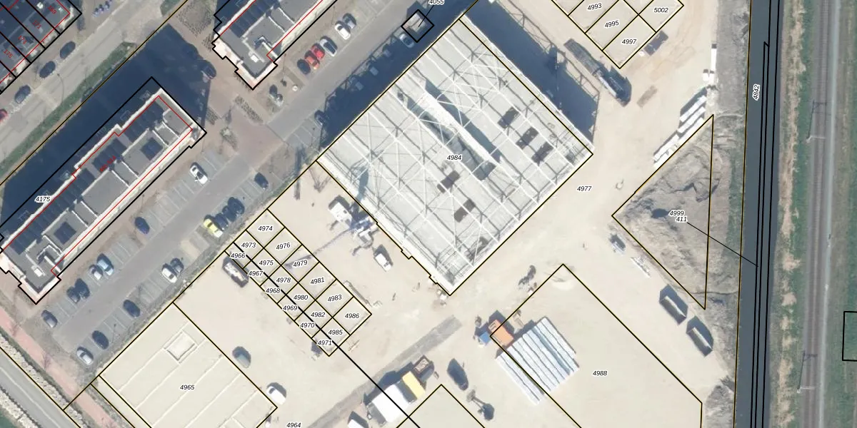 Het perceel waarop het adres ligt is WDV01-E-4984. De afkorting 'WDV01' staat voor kadastrale gemeente Waddinxveen. Het perceel is 2054 m² groot. Dat is kleiner dan de gemiddelde perceeloppervlakte in Waddinxveen, dat op 2158,81 m² ligt. De grootste perceeloppervlakte in de kadastrale gemeente is 49,8 ha. De kleinste oppervlakte bedraagt 0 m². Op het perceel liggen in totaal 184 adressen. In de Basisregistratie Kadaster (BRK) werden de grenzen van het perceel geregistreerd op 18-06-2024.