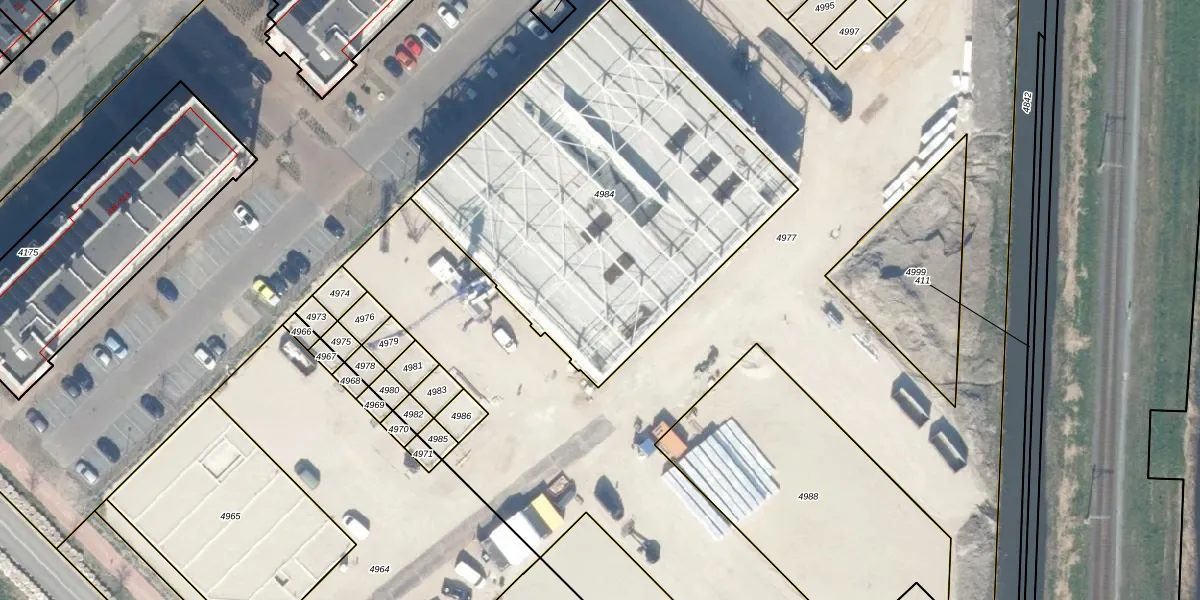 Het perceel waarop het adres ligt is WDV01-E-4984. De afkorting 'WDV01' staat voor kadastrale gemeente Waddinxveen. Het perceel is 2054 m² groot. Dat is kleiner dan de gemiddelde perceeloppervlakte in Waddinxveen, dat op 2158,81 m² ligt. Het grootste perceel in de kadastrale gemeente is 49,8 ha. Het kleinste perceel heeft een oppervlakte van 0 m². Op het perceel liggen in totaal 184 adressen. De laatste wijziging in het de Basisregistratie Kadaster (BRK) was op 18-06-2024.