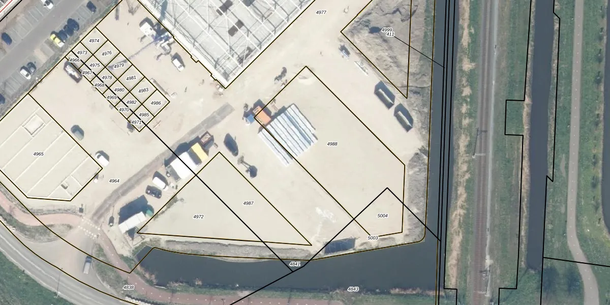 Het perceel waarop het adres ligt is WDV01-E-4988. De afkorting 'WDV01' staat voor kadastrale gemeente Waddinxveen. Het perceel is kleiner dan gemiddeld in Waddinxveen. Het perceel is 1134 m² groot, terwijl het gemiddelde ligt op 2158,81 m². Het grootste perceel in de kadastrale gemeente is 49,8 ha. Het kleinste perceel heeft een oppervlakte van 0 m². Op het perceel zijn 16 adressen aanwezig. In de Basisregistratie Kadaster (BRK) werden de grenzen van het perceel geregistreerd op 18-06-2024.