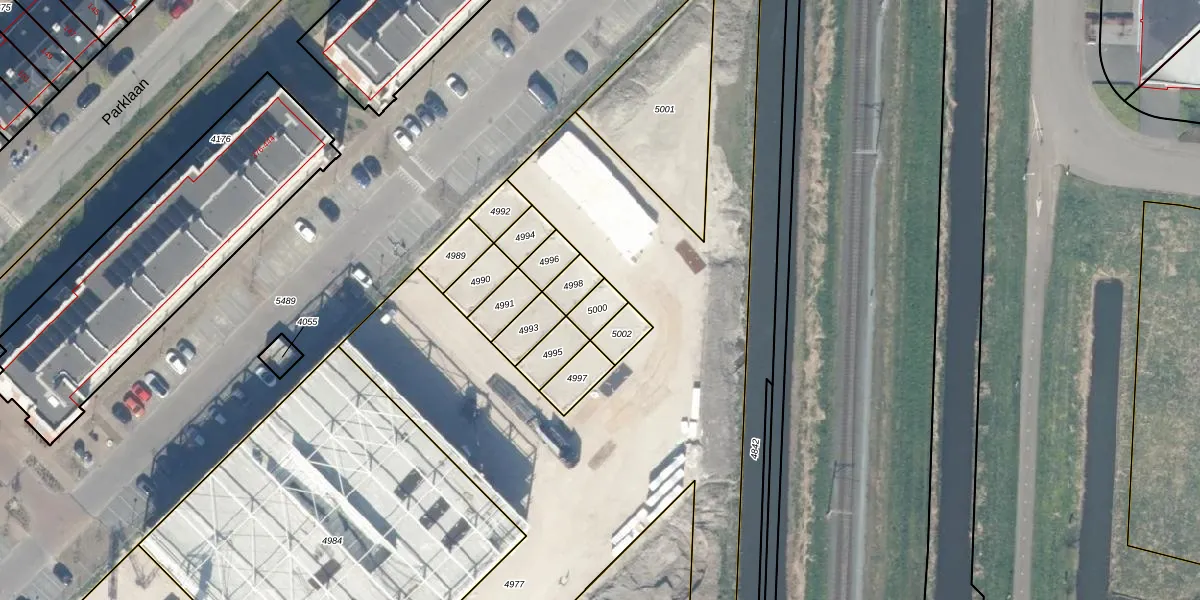 Het perceel waarop het adres ligt is WDV01-E-5000. De afkorting 'WDV01' staat voor kadastrale gemeente Waddinxveen. Het perceel is kleiner dan gemiddeld in Waddinxveen. Het perceel is 50 m² groot, terwijl het gemiddelde ligt op 2158,81 m². De grootste perceeloppervlakte in de kadastrale gemeente is 49,8 ha. De kleinste oppervlakte bedraagt 0 m². Dit is het enige adres dat aanwezig is op het perceel. In de Basisregistratie Kadaster (BRK) werden de grenzen van het perceel geregistreerd op 18-06-2024.