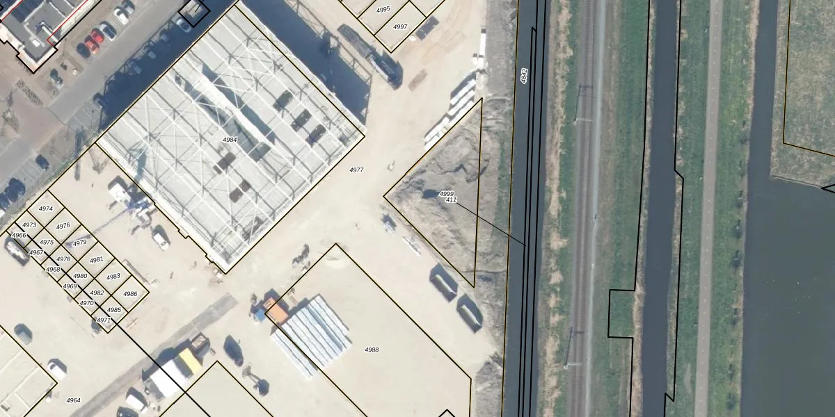 Het perceel waarop het adres ligt is WDV01-E-4999. De afkorting 'WDV01' staat voor kadastrale gemeente Waddinxveen. Het perceel is kleiner dan gemiddeld in Waddinxveen. Het perceel is 509 m² groot, terwijl het gemiddelde ligt op 2158,81 m². Het grootste perceel in de kadastrale gemeente is 49,8 ha. Het kleinste perceel heeft een oppervlakte van 0 m². Op het perceel liggen in totaal 9 adressen. In de Basisregistratie Kadaster (BRK) werden de grenzen van het perceel geregistreerd op 18-06-2024.
