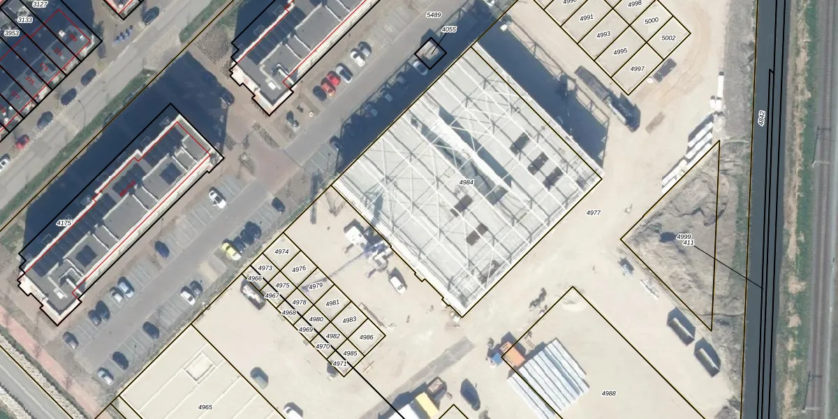 Het perceel waarop het adres ligt is WDV01-E-4984. De afkorting 'WDV01' staat voor kadastrale gemeente Waddinxveen. Het perceel is 2054 m² groot. Dat is kleiner dan de gemiddelde perceeloppervlakte in Waddinxveen, dat op 2158,81 m² ligt. De grootste perceeloppervlakte in de kadastrale gemeente is 49,8 ha. De kleinste oppervlakte bedraagt 0 m². Er zijn 184 adressen aanwezig op het perceel. In de Basisregistratie Kadaster (BRK) werden de grenzen van het perceel geregistreerd op 18-06-2024.