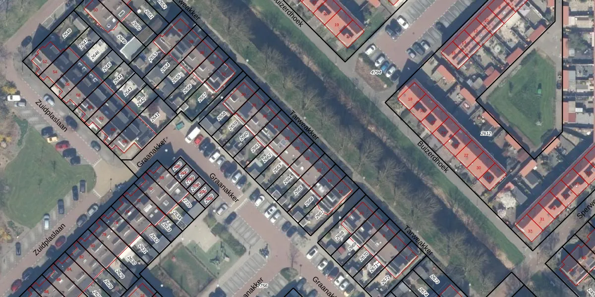 Tarweakker 20 is gelegen op kadastraal perceel WDV01C2663. Deze kadastrale aanduiding is uniek en wordt gebruikt door het Kadaster om eigendomsrechten en andere zakelijke rechten vast te leggen. Het perceel maakt onderdeel uit van de kadastrale gemeente Waddinxveen.