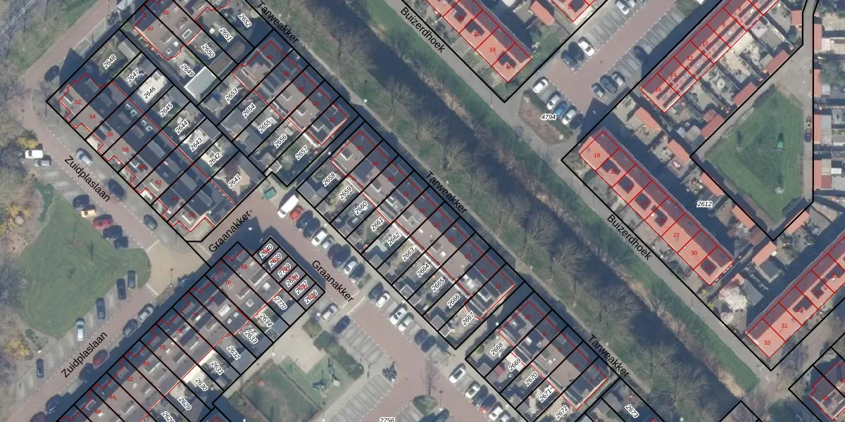 Het perceel waarop het adres ligt is WDV01-C-2662. De afkorting 'WDV01' staat voor kadastrale gemeente Waddinxveen. Het perceel is kleiner dan gemiddeld in Waddinxveen. Het perceel is 117 m² groot, terwijl het gemiddelde ligt op 2165,17 m². Het grootste perceel in de kadastrale gemeente is 49,8 ha. Het kleinste perceel heeft een oppervlakte van 0 m². Er zijn geen andere adressen aanwezig op het perceel. De laatste wijziging in het de Basisregistratie Kadaster (BRK) was op 25-10-2007.