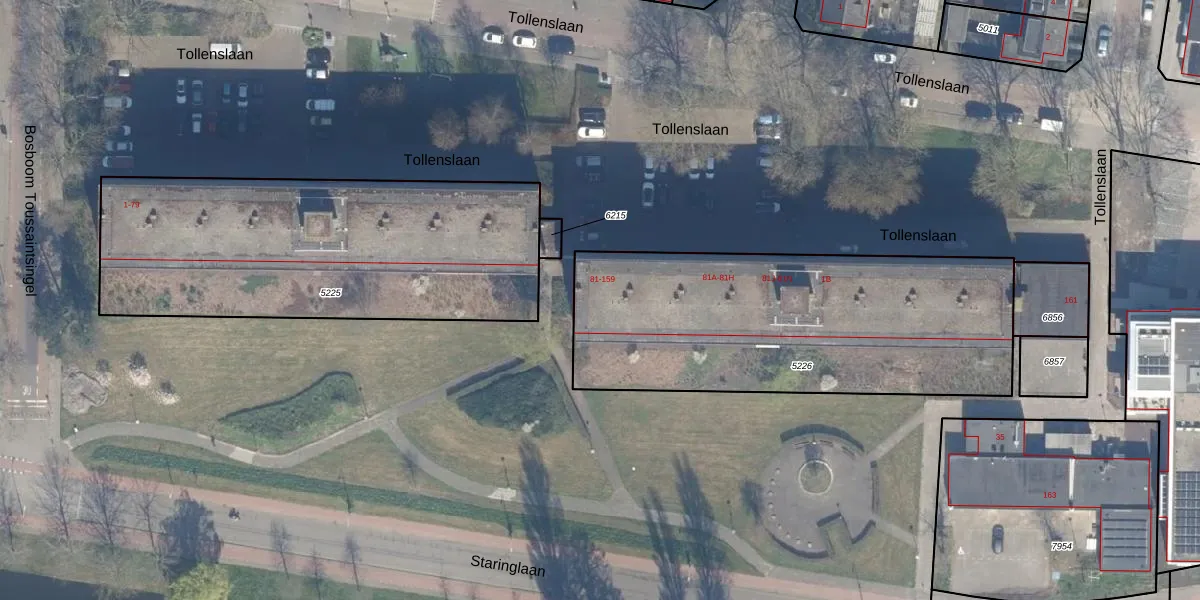 Tollenslaan 113 is gelegen op kadastraal perceel WDV01B5226. Deze kadastrale aanduiding is uniek en wordt gebruikt door het Kadaster om eigendomsrechten en andere zakelijke rechten vast te leggen. Het perceel maakt onderdeel uit van de kadastrale gemeente Waddinxveen.