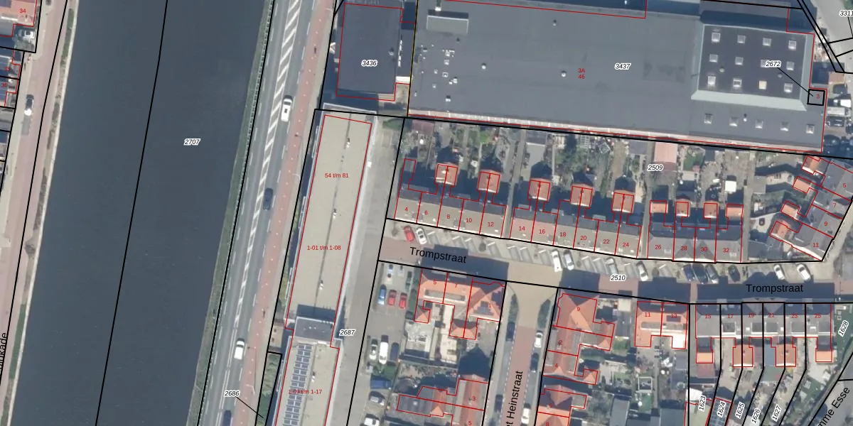 Trompstraat 6 is gelegen op kadastraal perceel WDV01G2509. Deze kadastrale aanduiding is uniek en wordt gebruikt door het Kadaster om eigendomsrechten en andere zakelijke rechten vast te leggen. Het perceel maakt onderdeel uit van de kadastrale gemeente Waddinxveen.