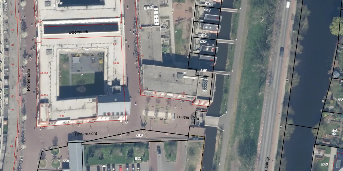 Tussenzicht 19 is gelegen op kadastraal perceel WDV01D3557. Deze kadastrale aanduiding is uniek en wordt gebruikt door het Kadaster om eigendomsrechten en andere zakelijke rechten vast te leggen. Het perceel maakt onderdeel uit van de kadastrale gemeente Waddinxveen.