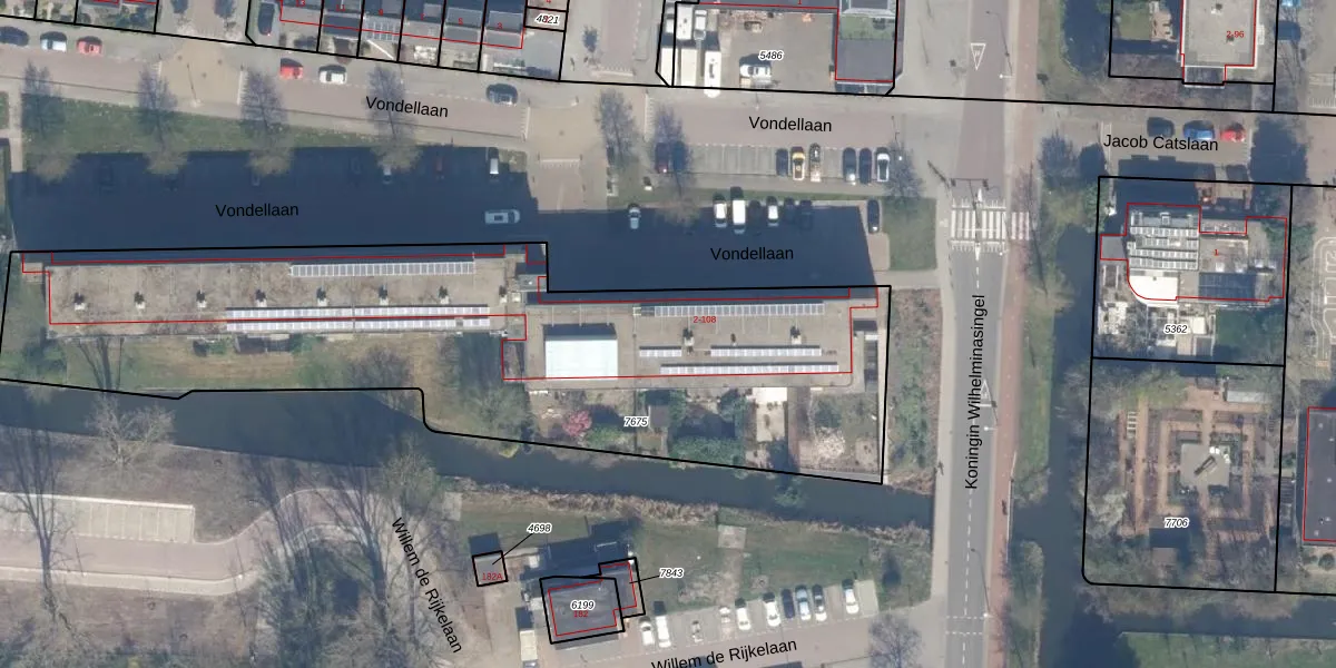 Het perceel waarop Vondellaan 10 staat heeft een oppervlakte van 3163 m². Dit is een zeer groot perceel. De perceeloppervlakte wordt geregistreerd door het Kadaster. Gedetailleerde informatie over de maten van dit perceel kunt u vinden in het rapport Kadastrale kaart met maatvoering van Vondellaan 10.