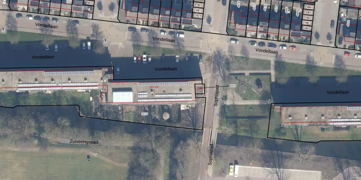 Het perceel waarop Vondellaan 114 staat heeft een oppervlakte van 3044 m². Dit is een zeer groot perceel. De perceeloppervlakte wordt geregistreerd door het Kadaster. Gedetailleerde informatie over de maten van dit perceel kunt u vinden in het rapport Kadastrale kaart met maatvoering van Vondellaan 114.