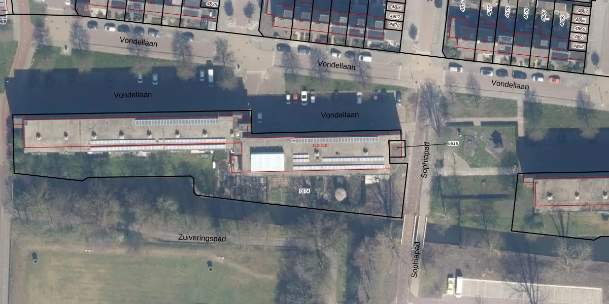 Het perceel waarop Vondellaan 120 staat heeft een oppervlakte van 3044 m². Dit is een zeer groot perceel. De perceeloppervlakte wordt geregistreerd door het Kadaster. Gedetailleerde informatie over de maten van dit perceel kunt u vinden in het rapport Kadastrale kaart met maatvoering van Vondellaan 120.