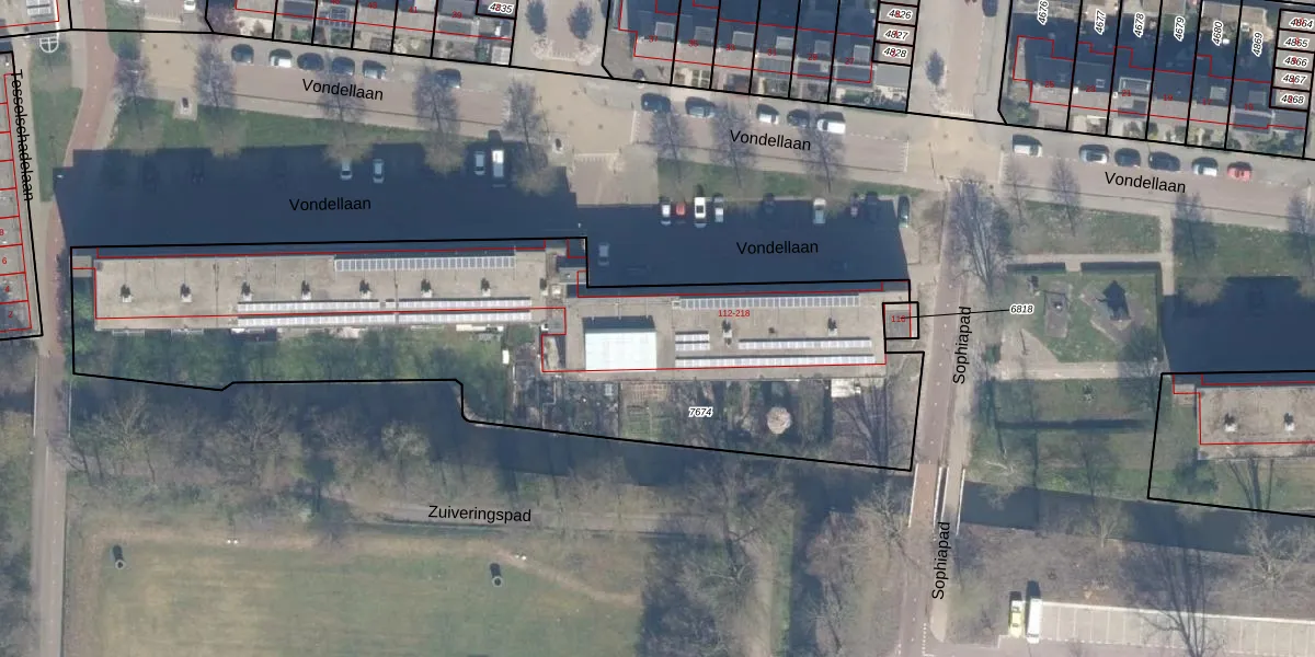 Het perceel waarop Vondellaan 122 staat heeft een oppervlakte van 3044 m². Dit is een zeer groot perceel. De perceeloppervlakte wordt geregistreerd door het Kadaster. Gedetailleerde informatie over de maten van dit perceel kunt u vinden in het rapport Kadastrale kaart met maatvoering van Vondellaan 122.