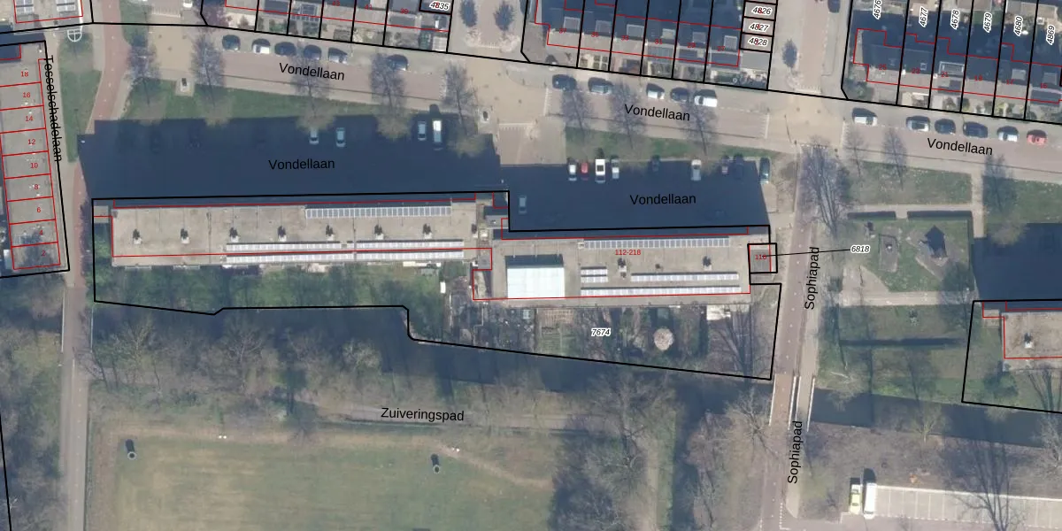 Het perceel waarop Vondellaan 124 staat heeft een oppervlakte van 3044 m². Dit is een zeer groot perceel. De perceeloppervlakte wordt geregistreerd door het Kadaster. Gedetailleerde informatie over de maten van dit perceel kunt u vinden in het rapport Kadastrale kaart met maatvoering van Vondellaan 124.