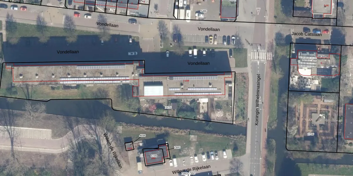 Het perceel waarop Vondellaan 22 staat heeft een oppervlakte van 3163 m². Dit is een zeer groot perceel. De perceeloppervlakte wordt geregistreerd door het Kadaster. Gedetailleerde informatie over de maten van dit perceel kunt u vinden in het rapport Kadastrale kaart met maatvoering van Vondellaan 22.