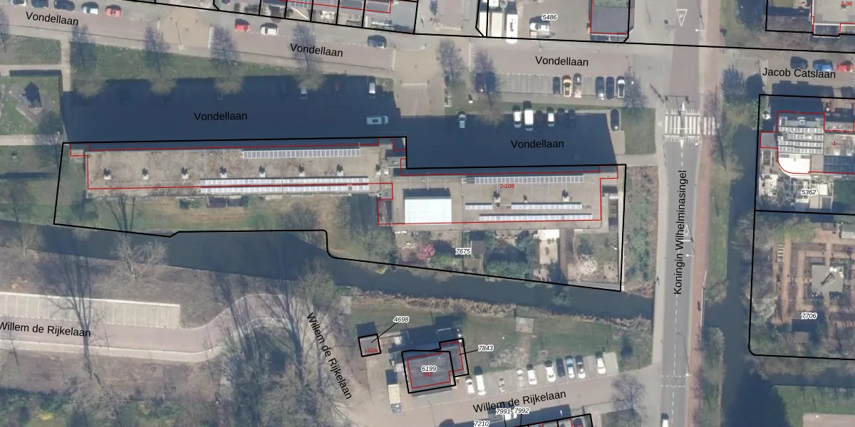 Het perceel waarop Vondellaan 38 staat heeft een oppervlakte van 3163 m². Dit is een zeer groot perceel. De perceeloppervlakte wordt geregistreerd door het Kadaster. Gedetailleerde informatie over de maten van dit perceel kunt u vinden in het rapport Kadastrale kaart met maatvoering van Vondellaan 38.