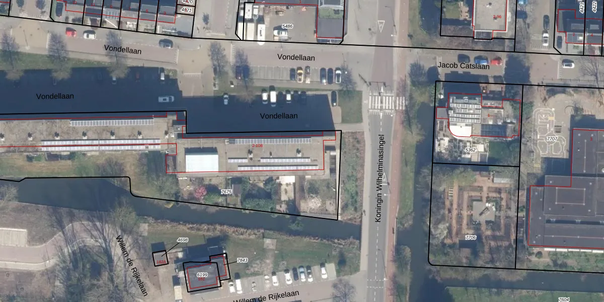Het perceel waarop Vondellaan 4 staat heeft een oppervlakte van 3163 m². Dit is een zeer groot perceel. De perceeloppervlakte wordt geregistreerd door het Kadaster. Gedetailleerde informatie over de maten van dit perceel kunt u vinden in het rapport Kadastrale kaart met maatvoering van Vondellaan 4.